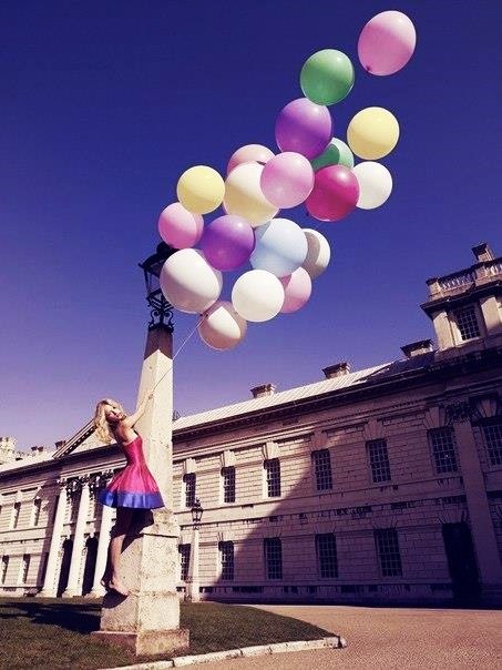 Мы хорошо отпраздновали день рождения дочки, несмотря на то, что мы его не отмечаем для посторонних для родни и друзей. Я устроила настоящий праздник: купила много разноцветных гелиевых шаров и так шла по улице, на меня все оборачивались! :) Ветер чуть меня не уносил!!! Так что было очень похоже с такой картинкой: