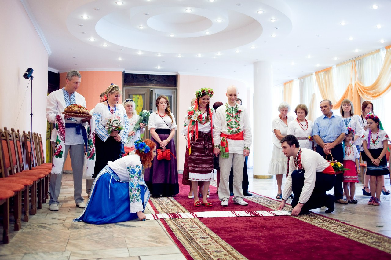 Решила поделиться на своем блоге, с разрешения всех сторон, очень необычной современной свадьбой в украинском стиле. Казалось бы, что тут такого! Не в городе - да. Но эта необычная национальная церемония в ЗАГСе, кажется была единственная на весь Киев! Сбежались посмотреть, кажется все...