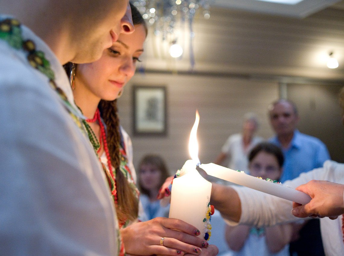 Огонь от двух свечей - семей родителей - передают огонь третьей семье - молодым