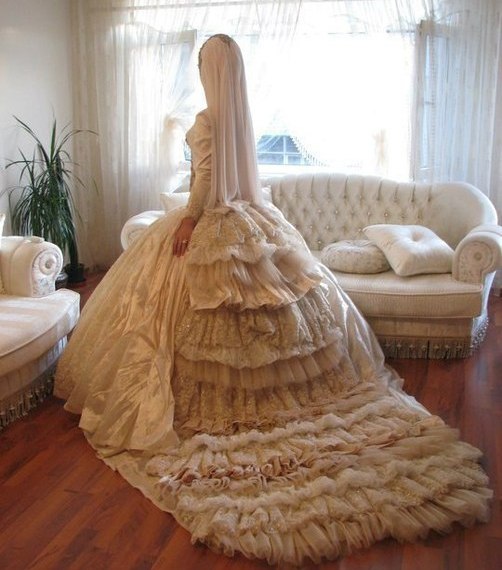 Нельзя надевать свадебное платье выше колен. Чем длиннее платье, тем длиннее супружеская жизнь.