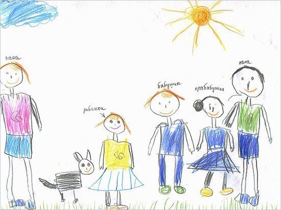 По очередности: последовательность появления членов семьи указывает на отношение к ним юного художника. Обычно первым дети рисуют самого любимого или самого значительного члена семьи. Если он забыл нарисовать кого-то – это значит, что с этим человеком у ребенка натянутые отношения. Себя ребенок часто изображает в самом центре – значит он уверен в том, что родители любят его. И наоборот, он чувствует себя брошенным и одиноким, если не нарисовал себя вовсе.