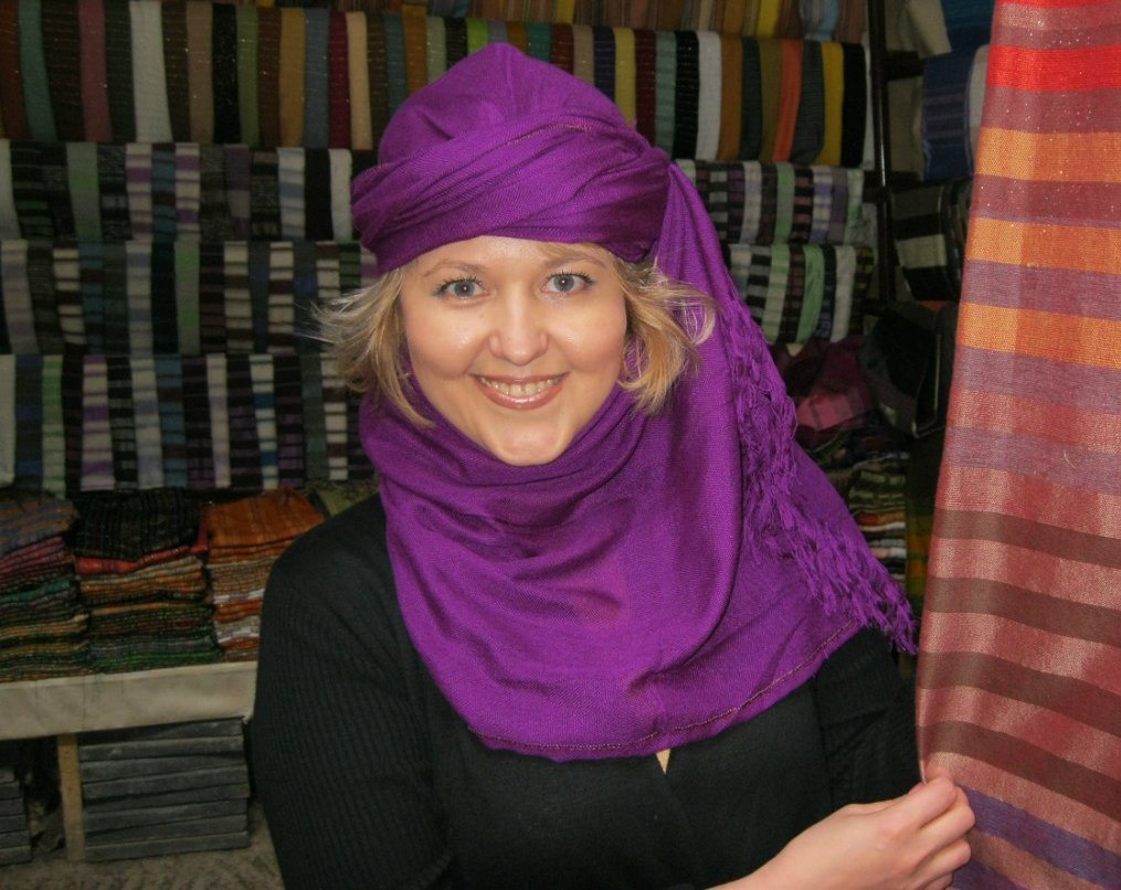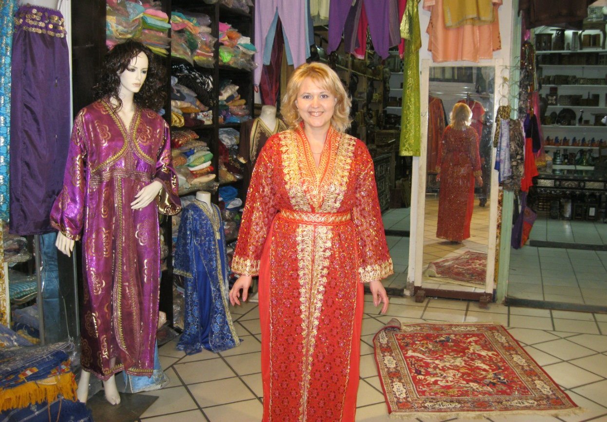это я балуюсь красными нарядами в магазинчике Марракеша (Марокко)