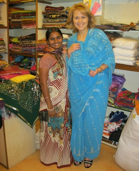 Впервые я примерила сари в Индии. Фото получилось такое, стеснительное... Я же совсем не знала, как меня понесет дальше! : )
