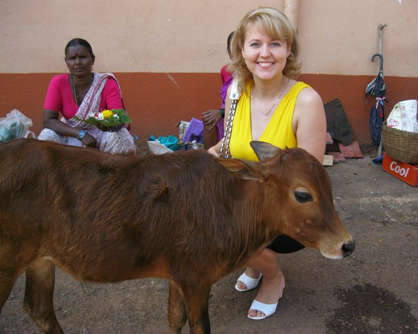 Напоследок маленькое фото с маленькой священной коровой, живущей при индуистском храме