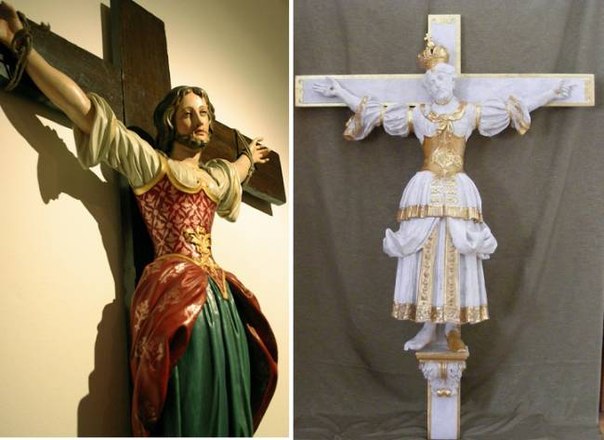 Существует распространенная версия, что никакой бородатой девы не было. А было вот что: в храме VoltoSantodiLucca, что в Сан-Марино, одном из центров паломничества того времени, была необычная скульптура распятия, изображающая Иисуса одетым в пышную, богато украшенную длинную тунику. Со временем копия статуи попала в Центральную и Северной Европу, но привычные к иной мужской одежде люди тех земель решили, что на кресте — женщина, так и появилась легенда про Вильгефортис.
