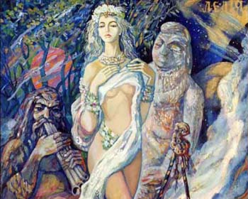 Кострома – почиталась как богиня и покровительница влюбленных. Являлась стихийным воплощением Воды, созидательной женской первоэнергии.