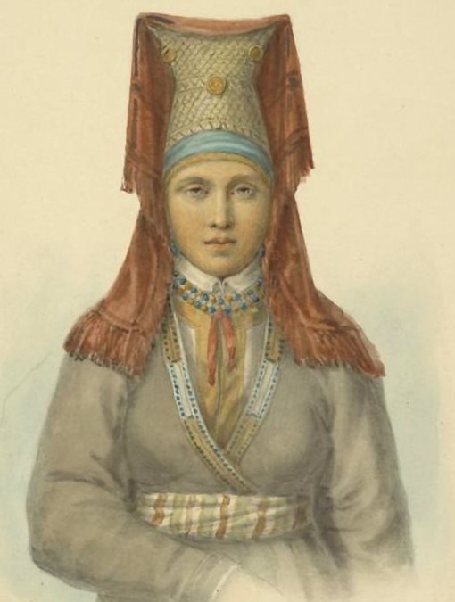 Замужняя женщина, гордая тем, что станет матерью, убирала две косы в кички (две ракушки из волос).
