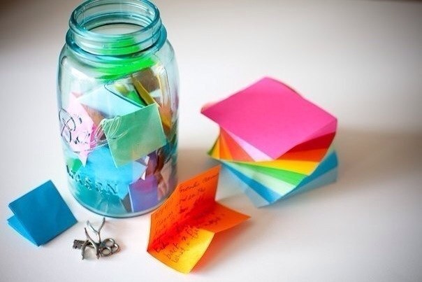 С 1 января, с начала года, ввести для себя новое правило - начать записывать все свои хорошие, приятные мгновения из жизни на бумажечки и хранить в одном месте.